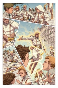 Макар да съм горе-долу единственият човек в ShadowDance, който харесва Бял пясък, не мога да отрека, че историята си има своите недостатъци. Основният от тях е, че това е една трета от история, която очевидно не е писана с идеята да се разделя на три. В резултат, колкото и да се старах да няма спойлъри в горния абзац и да не давам повече информация от описанието на корицата, все пак разказах по-голямата част от сюжета на първия том. Той свършва в нищото. Дори не бих го нарекла клифхенгър – просто в последната трета на комикса се появяват някакви нови герои, без да е ясно какво правят там, и започват нови сюжетни линии, които не стигат до никъде. Двамата главни герои, Кентън и Крис, имат достатъчно развитие като за един том, но не мога да кажа същото за останалите. Очаквам ситуацията да се оправи с втория том, който излиза на 7 ноември; разбира се, и за него ще има ревю.