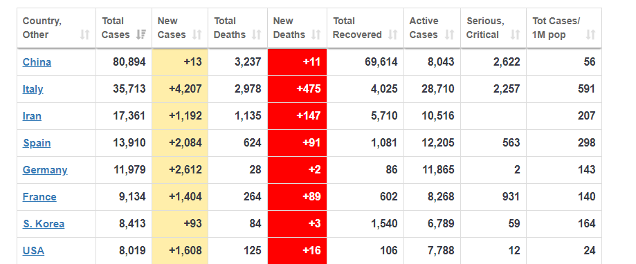 Немския сайт е як за разглеждане, но аз най-често (като искам да си вдигам стреса безпричинно) гледам тук: https://www.worldometers.info/coronavirus/ Периодично съм им проверявал статистиките за различни държави и винаги са били точни, от добър източник и ъпдейтва супер бързо.