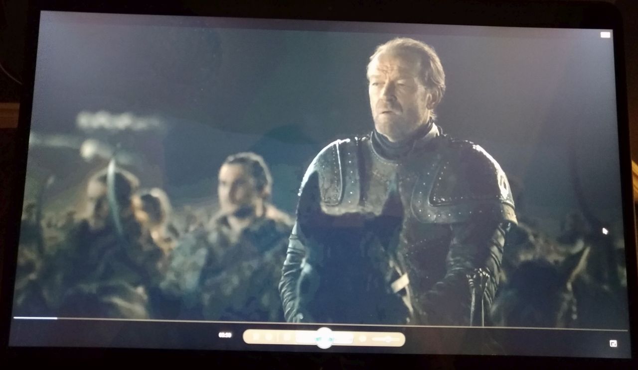 С малко помощ от Daenerys Targaryen тествах файла (най-добрия наличен, 5GB 1080) на следните системи/екрани, използвайки една от най-тъмните сцени преди Мелисандра да запали оръжията на дотраките: