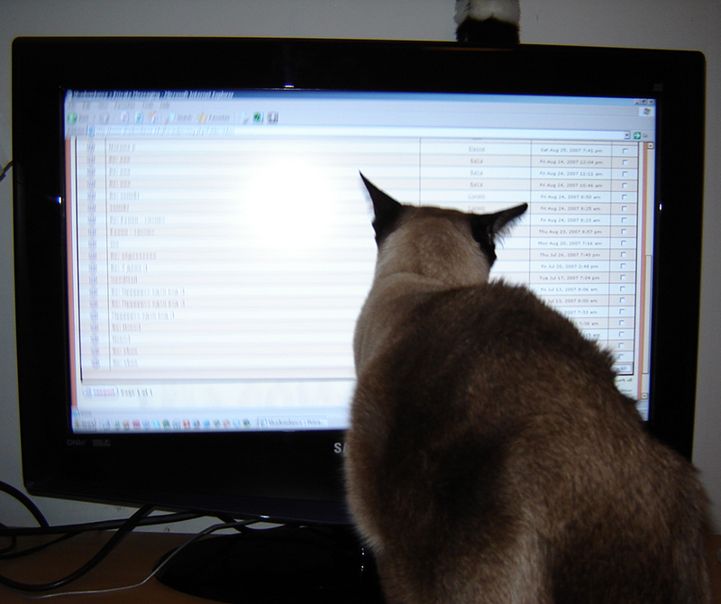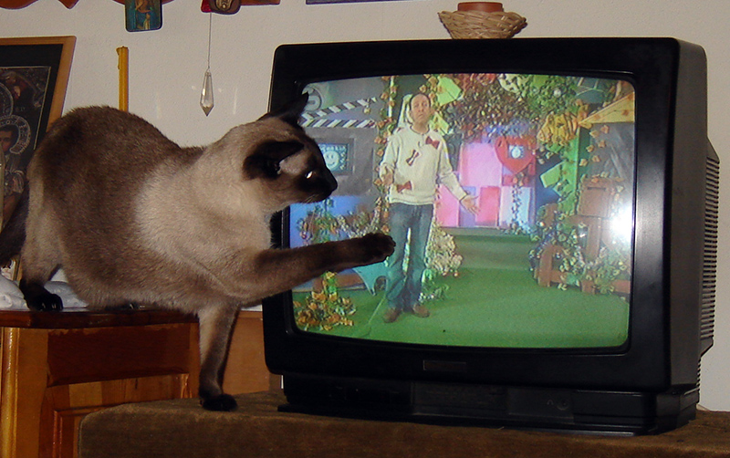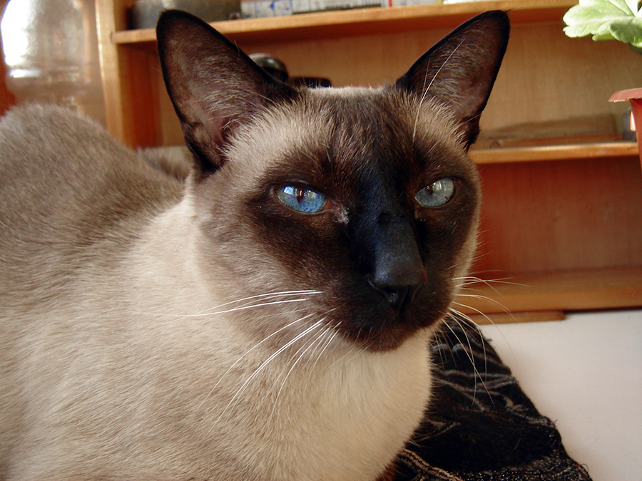Имах нейде 2007-а един необичайно кротък сиамец с ебаси очите, ама трудно се снима котка да седи мирна и с тия цветове. Обичаше да гледа телевизия и да зяпа шадоуденса.