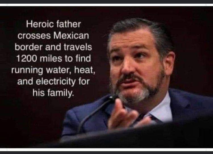Междувременно Тед Круз съумя да се докаже не само като най-мразеният сенатор в САЩ, но и най-тъпият... Миймовете валят вече два дни и няма признаци на затишие. И докато той "няма какво да направи" за да помогне на Тексас, Бето О'Рурк, който изгуби срещу него 2018 фоун банкваше, а АОК събра над милион долара да помогне на жертвите от бурята.