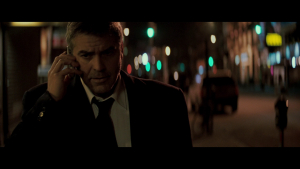 Началото на Майкъл Клейтън ми е толкова любимо, защото успява изключително пестеливо, скоростно и несамодоволно да ти покаже колко интелигентен и динамичен е предстоящият филм. Монологът моментално заявява колко важни ще са думите на героите, колко качествен е сценарият и колко високо ще е нивото на актьорската игра. Нощната кинематография и меката светлина са визуално пиршество. Камерата се вие флуидно измежду фигурите и се бави, преди да центрира най-важното в сцената – например ни показва всички други играчи на масата за покер, преди да ни позволи да зърнем Клуни, който дори тогава не показва сведените си очи. И през цялото време музиката, едва забележима, захранва напрежението.