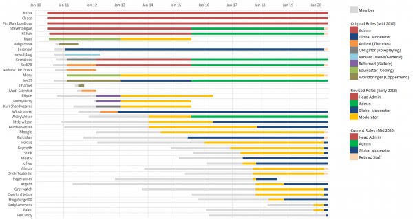 ШД: Още една стъпка назад към форумните общества. Освен че си сред по-отдавнашните членове, ти си и модератор на 17th Shard – ако можем да вярваме на един крайно nerdy chart, от 2018 насам. Трудна ли е тази задача, включително в светлината на горния въпрос? По-скоро спорове ли трябва да разрешаваш и да бориш тролове, или по-скоро главно криеш спойлери?