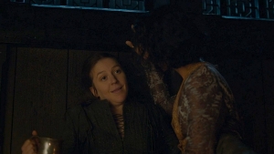 Сцените с Денерис в Драконов камък мязаха на леко отегчена репетиция, в която всички си четат репликите от телепромптер. Тирион и лорд Варис рецитираха почти вдъхновено, все едно не отбиваха номера, ами наистина играеха. Саркастичната баба, лейди Олена, си беше запомнила репликите добре въпреки напредналата възраст, но явно смъртта на цялото ѝ семейство в края на предишния сезон не ѝ беше повлияла особено. Пясъчните змии също се появиха отново и ни напомниха защо сме им „фенове“. Не мога да не спомена, че дълбоките военни стратегии, с които персонажите боравеха в тези сцени, можеха да накарат Сун Дзъ да се обърне в гроба. Следвайки примера на Варис от шести сезон, и Мелисандра се телепортира през половината Вестерос при Денерис, за да снесе малко инфо. За съжаление (или за щастие?) не се съблече веднага, но има още време.
